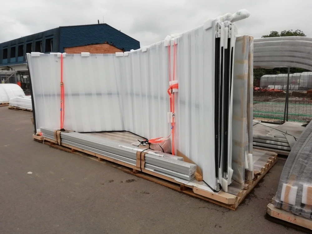 15. Patio enclosure with fully assembled segments on pallet